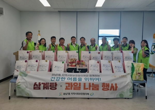 이번 행사는 지역사회보장협의체 위원들이 말복을 맞이해 광남1동 저소득 홀몸 어르신에게 삼계탕 및 과일 꾸러미를 전달해 건강을 살피고 말복 더위로부터 건강하게 여름을 날 수 있도록 도움을 주고자 추진됐다.
