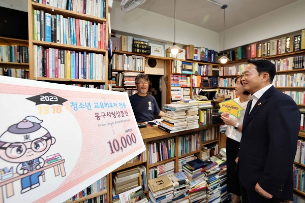김찬진 동구청장은 “처음 시행되는 청소년 교육바우처에 대한 학부모와 청소년, 관련 사업장 업주들의 기대감이 높은 상황”이라며 “학부모의 교육비 부담 경감은 물론 지역화폐 지급을 통해 골목경제 활성화에도 기여할 것으로 기대된다”고 말했다.