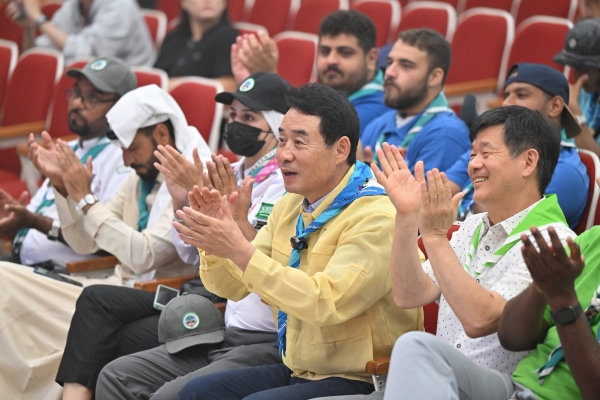 백영현 포천시장은 10일 대진대학교 학생회관에서 진행되는 포천문화 체험 행사를 찾아 “머나먼 사우디아라비아에서 새만금을 거쳐 우리 포천시까지 오신 것을 환영하며 K-컬쳐와 한국의 멋을 느낄 수 있는 시간이 되시길 바란다”며 “대진대학교 임영문 총장님과 관계자 여러분께도 감사드리며 잼버리 대원들께서도 가시는 날까지 건강하시고 항상 우리 포천시를 잊지말아 달라”고 말했다