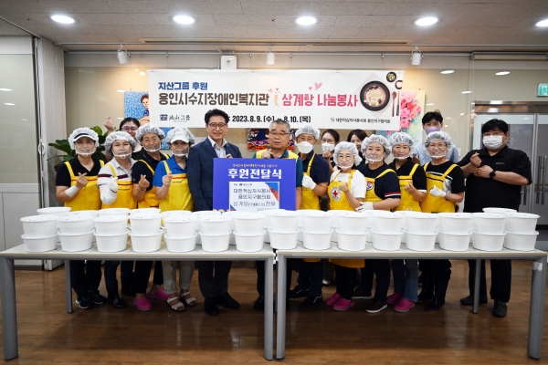 이날 ‘말복 맞이 삼계탕 데이’ 행사는 ㈜지산그룹에서 후원하고 대한적십자사봉사회 용인지구협의회가 주관하는 사회공헌활동의 일환으로 더위에 지친 장애인 이웃들이 계속되는 무더위를 잘 극복하고 건강하게 보내라는 뜻에서 진행됐다.