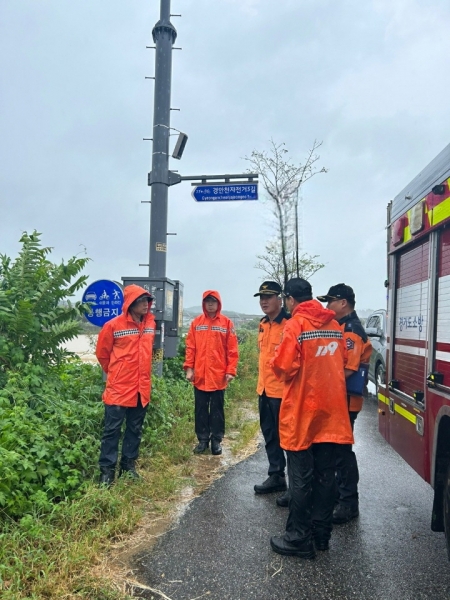 먼저, 집중 호우 시 인명피해가 우려되는 57개 지역에 대해 안전 순찰을 강화해 선제적 차단조치를 실시할 것으로 긴급상황 발생 시 소방차량 싸이렌 및 방송을 통한 대피유도 통제선을 활용 안전구역 설정 등 안전사고에 대비하고 있으며선제적 상황대책반 운영과 풍수해 비상근무를 실시해 119신고 폭주 시 신속한 대응과 위험지역 출입 통제 및 현장 활동을 지원하고 유관기관과의 실시간 현장 정보 공유 등 협업 대응체제를 강화해 초동대응 및 상황전파에 최선을 다하고 있다.