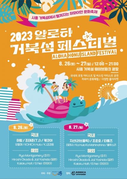 [금요저널] 시흥시가 오는 8월 26일과 27일 이틀간, 시화MTV 거북섬 웨이브파크 광장에서 ‘2023 알로하 거북섬 페스티벌’을 개최한다.