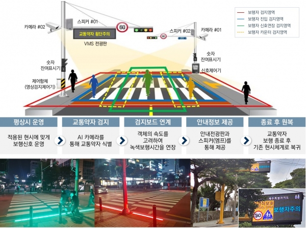 이외에도, 횡단보도에 접근하는 보행자와 교통신호 변화를 실시간으로 인식해 안내하는 스마트 횡단보도를 어린이·노인보호구역 및 사고다발지점에 설치할 예정이다.