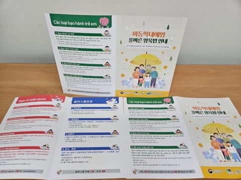 아동학대 예방 리플릿은 영어, 중국어, 베트남어로 제작됐으며 신체학대 정서학대 성 학대 방임 및 유기 등 총 4가지 아동학대 유형을 다문화가정이 이해하기 쉽게 번역했다.
