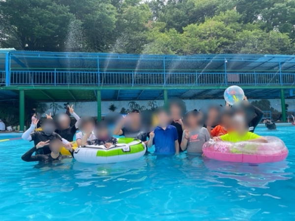 [금요저널] 평택시 정신건강복지센터에 등록된 정신장애인 24명은 지난 9일 안중 황금수영장에서 물놀이를 진행했다.