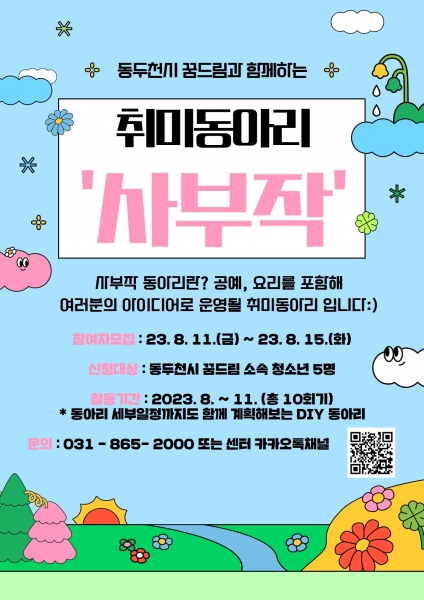동두천시학교밖청소년지원센터, 취미동아리 ‘사부작’ 참여자 모집