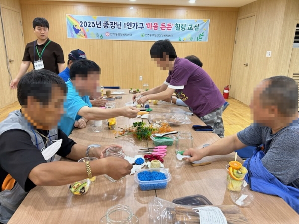 마음 든든 힐링 교실은 만석동 지역사회보장협의체에서 추진하는 ‘든든 보따리 나눔’ 사업을 확장해 진행한 것으로 우울감이 높은 중장년 남성 1인 가구를 대상으로 고독사 예방을 위한 심리지원 프로그램을 총 5회 진행했다.