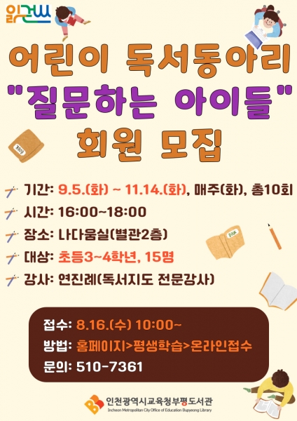 독서의달 맞이 프로그램 참가 신청은 8월 21일 오전 10시부터 부평도서관 홈페이지를 통해 선착순으로 접수한다.