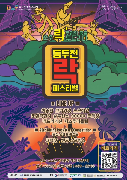 동두천시는 2023년 경기관광축제로 선정되는 등 명실상부 우리나라를 대표하는 역사와 전통을 자랑하는 ‘동두천 락 페스티벌’을 오는 8월 25일 26일 양일에 걸쳐 소요산 주차광장 특설무대에서 개최한다고 밝혔다.