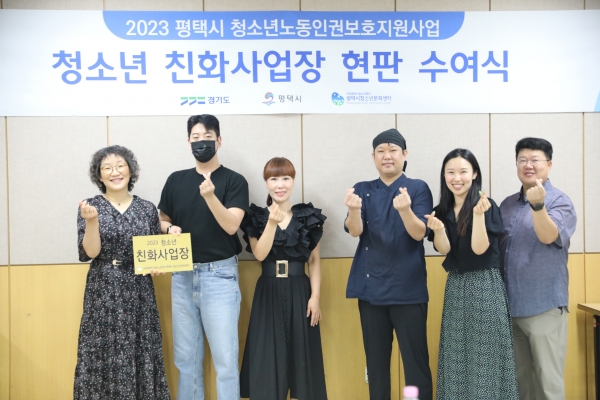 [금요저널] 평택시청소년문화센터는 2023년 상반기 ‘청소년친화사업장’으로 플라워카페 꽃담, 컴포즈커피 평택고덕중앙점, 수제돈가스 무진돈, 메가커피 평택시청점 등을 선정해 지난 8월 1일 이들 4개소에 ‘청소년친화사업장 현판 수여식’을 진행했다.