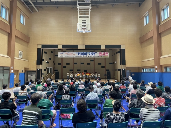 지난 11일 능평초등학교 체육관에서 열린 콘서트는 여름철 휴가를 떠나기 힘든 어르신들을 위해 가수 초청 및 능평 어린이집 원아들의 공연을 준비했으며 참여한 어르신들을 대상으로 소정의 선물도 증정했다.
