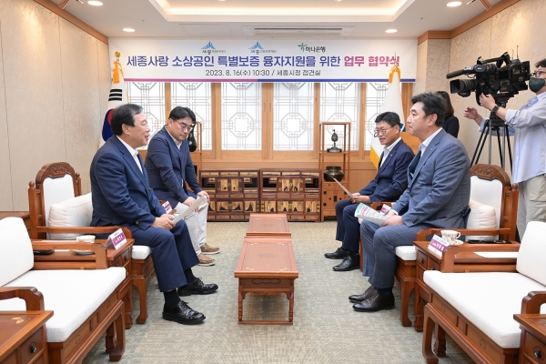 시는 16일 접견실에서 하나은행, 세종신용보증재단과 금융지원 업무협약을 체결했다.