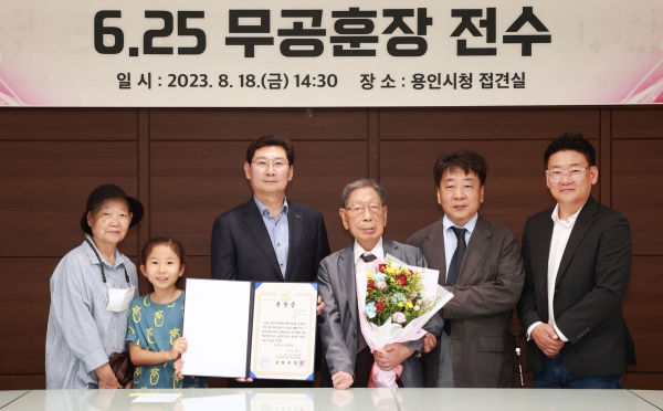 이상일 용인특례시장은 6·25 전쟁에 참전해 공로를 인정받은 이문보씨와 고 박창식 하사, 고최종문 상병, 고 이용우 이병의 유족들에게 직접 훈장을 전달했다.