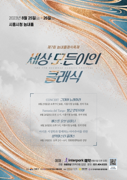 한국음악협회 시흥지부 관계자는 “이번 공연으로 다채롭게 준비된 클래식을 즐길 수 있기를 기대한다”며 “전문 연주자와 시민이 함께 만든 프로젝트를 통해 클래식 장르에 대한 접근성을 높이며 서로의 꿈을 응원하고 이뤄가는 의미 있는 축제가 되길 바란다”고 전했다.