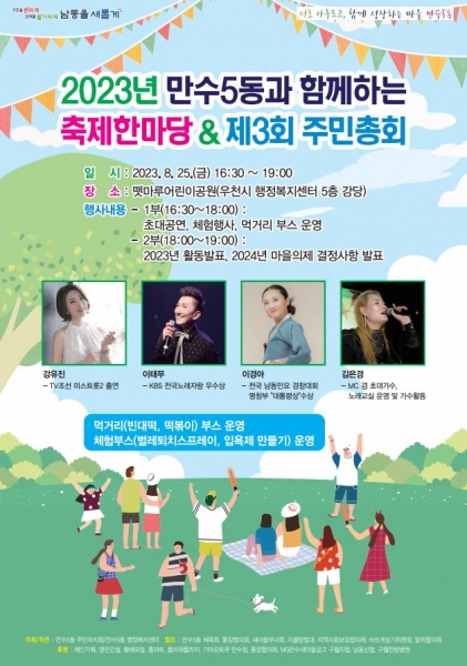 조동희 회장은 “주민참여예산사업은 주민이 마을에 필요한 사업을 직접 발굴하고 주민총회에서 투표로 결정해 주민자치를 실현하는 사업”이라며 “제3회 만수5동 주민총회가 열리는 25일에는 현장 투표도 진행하니 주민 여러분의 많은 관심과 참여를 부탁드린다”고 전했다.