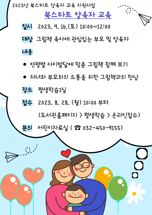 인천광역시교육청주안도서관, 2023년 북스타트 양육자 교육 지원사업 선정