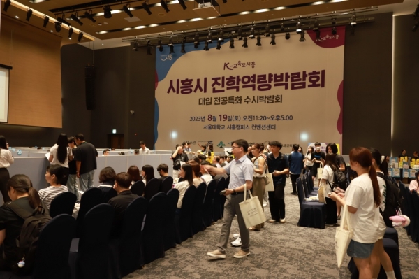 시흥시가 시흥시 인재양성재단, 시흥교육지원청과 공동주최로 진행한 이번 박람회는 2023년 대입전형 중 수시 비중이 82%로 높았던 시흥시 지역 특성에 맞춰 전공 특화 수시 박람회와 학부모특강을 중심으로 마련됐다.