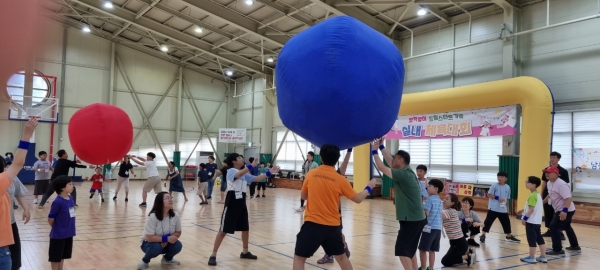 이날 간단한 몸풀기 체조를 시작으로 지구 나르기, 발맞춰 영차, 판 뒤집기 등 다양한 활동으로 크고 작은 함성을 자아냈다.