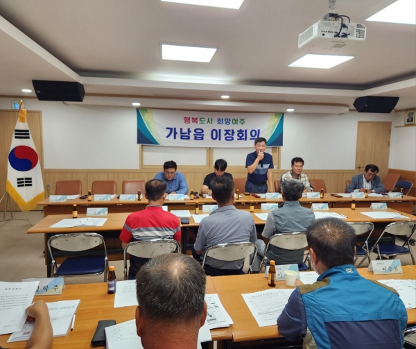 [금요저널] 가남읍은 지난 21일 가남읍 행정복지센터에서 40개리 마을 이장이 참석한 가운데 8월 2차 이장회의를 개최해 시·읍정홍보 및 당면 현안에 대해 협의했다.