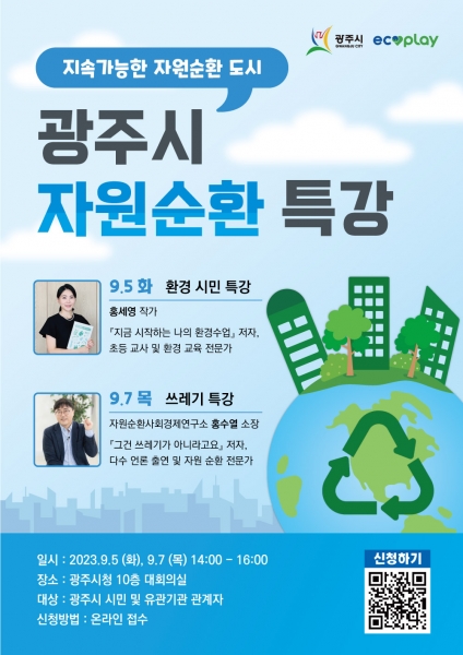 [금요저널] 광주시는 자원순환 전문가를 초빙, 전 시민을 대상으로 오는 9월 5일과 9월 7일 시청 대회의실에서 ‘자원순환 특강’을 실시한다고 22일 밝혔다.