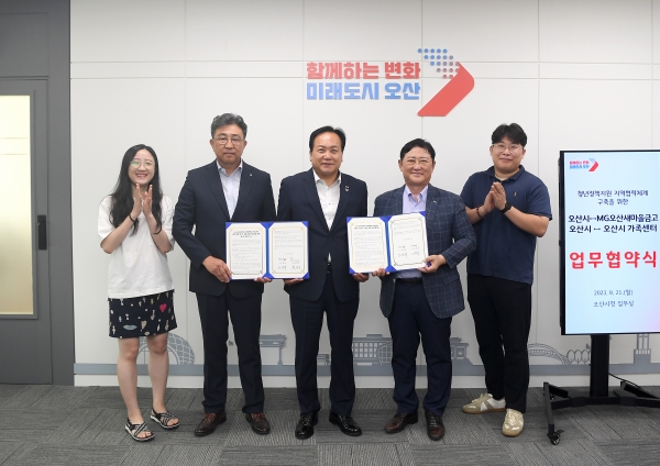 [금요저널] 오산시는 21일 MG오산새마을금고 오산시가족센터와 청년정책지원 지역협력체계 구축을 위한 업무 협약을 맺었다.