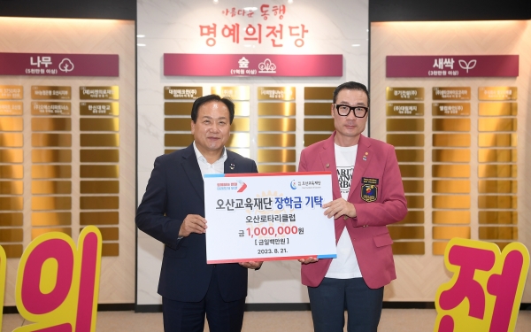 [금요저널] 오산시는 지난 21일 시청 1층 명예의 전당에서 오산 로타리클럽으로부터 지역 특기생 육성을 위한 장학금 1백만원을 기탁받았다고 밝혔다.