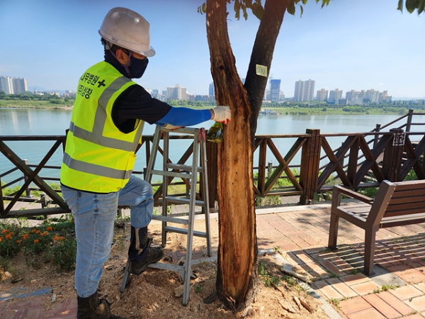 이번 가로수 외과수술은 여주 내 나무병원과 손잡고 결함이 발견된 수목을 대상으로 썩은 부위를 도려낸 다음 살균·살충 및 방부·방수처리까지 마무리했고 부패가 심하게 진행되어 생존이 불가능한 가로수도 일부 제거했다.