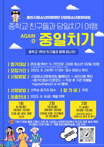 용인시청소년미래재단 신갈청소년문화의집, 중학교 친구들과 당일치기 여행“중일치기”참가자 모집