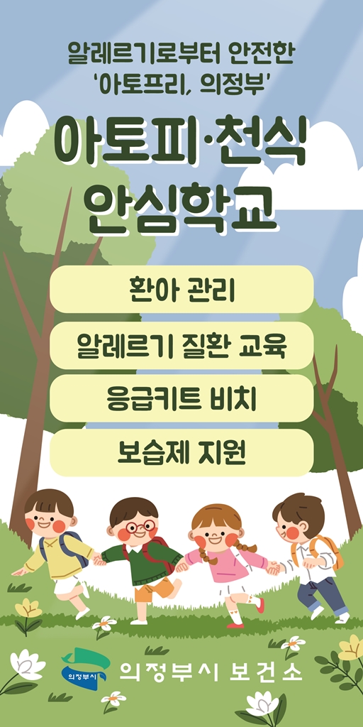 한편 의정부시보건소는 안심학교 운영, 환아 선별조사뿐만 아니라 만 12세 미만 환아 대상 보습제 지원사업, 아토피 바로알기 교육, 아토피피부염 예방 인형극 등 알레르기 질환의 예방과 관리를 위한 다양한 사업을 시행하고 있다.