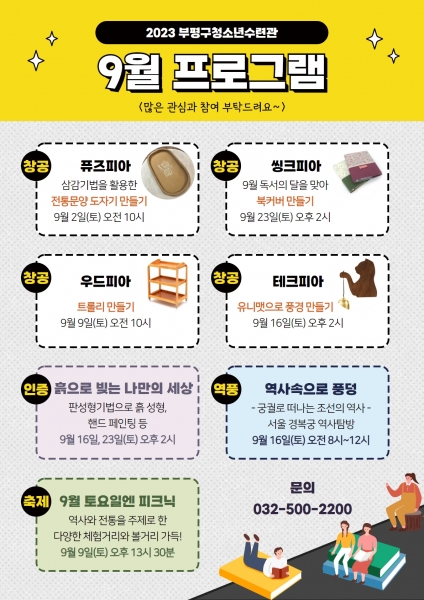 부평구 청소년수련관, 2023년 9월 청소년 프로그램 운영