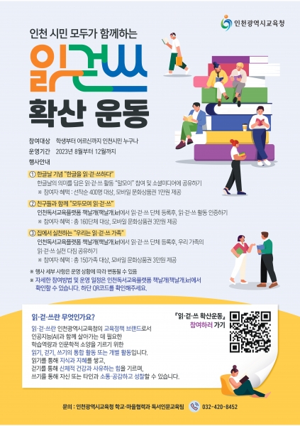 [금요저널] 인천광역시교육청은 인천 시민을 대상으로 2023년 ‘읽·걷·쓰 확산 운동’을 전개한다고 25일 밝혔다.