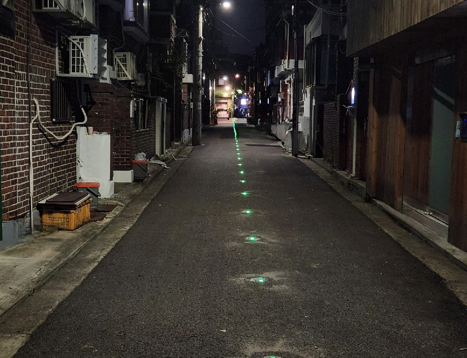 특히 구는 보안등이 설치돼 있지만 상대적으로 조도가 낮은 어두운 골목길에 바닥등을 집중 설치해 야간 시야 확보에 주력했다. 주간에 자동 충전해 빛을 내는 태양광 LED 구조로 주변 조도를 안정적으로 유지해 안전한 야간보행환경 구축에 기여할 것으로 보인다.