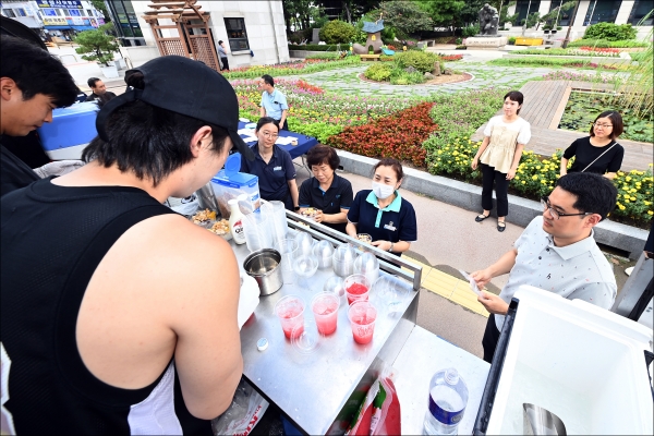 [금요저널] 부평구는 지난 25일 야외근로자를 대상으로 컵빙수, 수박화채 등을 제공하는 ‘폭염 안전 푸드트럭’을 운영했다.