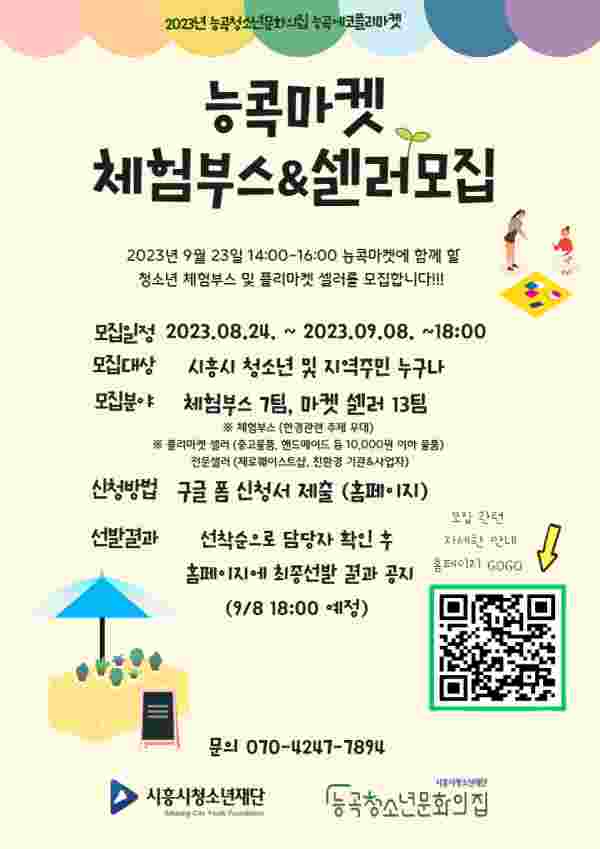 [금요저널] 능곡청소년문화의집에서 운영하는 2023년 하반기 에코플리마켓 ‘능콕마켓’에서 벼룩시장 판매자와 청소년 체험 부스 운영자를 오는 9월 8일까지 모집한다.