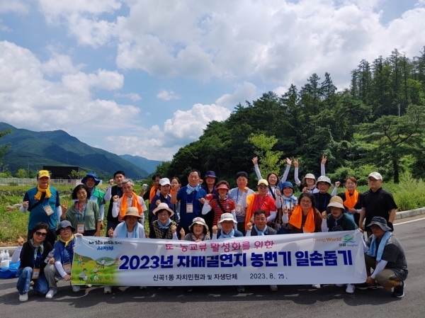 [금요저널] 의정부시 신곡1동행정복지센터는 8월 25일 강원도 영월군 김삿갓면을 방문해 도·농교류 활성화를 위한 ‘2023년 자매결연지 농번기 일손 돕기’를 진행했다.