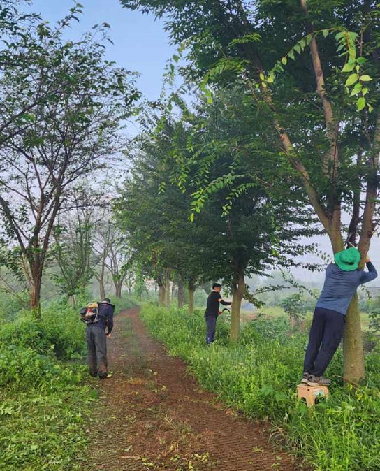 예초기로 나무 주변을 다시 한번 제초했으며 산책길에 불편을 주는 잔가지를 제거했다.