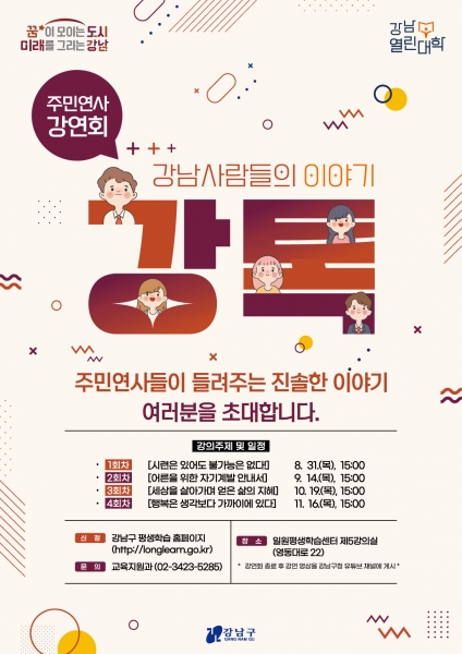 현장 강연 참가는 강남구 평생학습 홈페이지에서 신청할 수 있다.