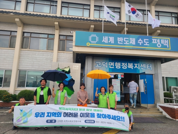 고덕면 지역사회보장협의체 박보숙 위원장은 “복지 사각지대에 놓인 위기가정이 발생하지 않도록 주변의 관심과 노력이 모이길 희망하면서 앞으로도 홍보활동을 펼쳐 주민의 관심과 참여를 유도하겠다”고 말했다.