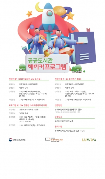 이번 메이커프로그램은 부개어린이도서관이 지난 3월 문화체육관광부가 주최하고 ㈜루원이 주관하는 ‘2023년 공공도서관 메이커프로그램’ 운영 지원 사업 수행기관으로 3년 연속 선정됨에 따라 마련됐다.