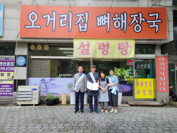 오거리집은 지난해 5월부터 저소득층을 위해 매월 든든한 뼈해장국 및 설렁탕 25인분을 기부하고 있다.