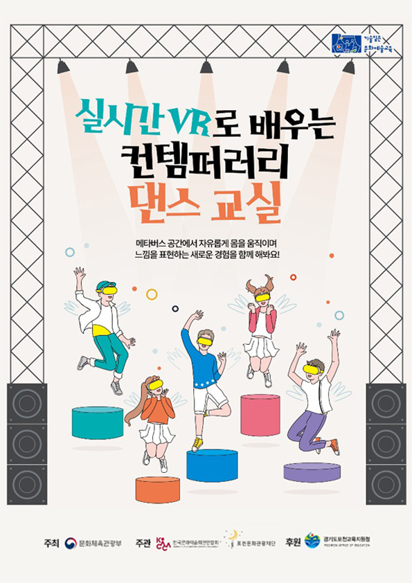 한편 ‘실시간 VR로 배우는 컨템퍼러리 댄스교실’은 문화체육관광부가 주최하고 한국문화예술회관연합회가 주관하는 문화예술교육 프로그램 ‘기술입은 문화예술교육’ 사업의 일환으로 경기도포천교육지원청과 연계해 진행한다.