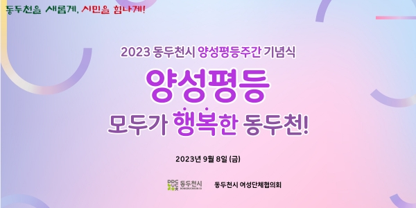 [금요저널] 동두천시는 경기도여성단체협의회 동두천시지회와 함께 ‘양성평등 모두가 행복한 동두천’이라는 주제로 2023 동두천시 양성평등주간 기념식을 개최한다.