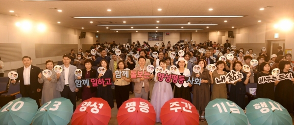 양성평등주간을 기념하기 위한 이번 행사에서 ‘함께 일하고 함께 돌보는 양성평등사회’라는 슬로건과 함께 양성평등 실천 의지를 다지는 시간을 가졌다.
