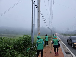 회원들은 높은 기온에도 불구하고 도로변에 무성하게 자라 우거진 잡초 등을 제거하고 주변에 방치된 쓰레기 및 적치물 등을 수거해 아름다운 가로환경 및 쾌적한 주변 환경 조성을 위한 노력을 기울였다 구교호 회장은 “이른 아침부터 예초 작업과 환경 정비에 적극 동참해 주신 회원들에게 감사드리며 앞으로도 아름다운 내 고향 만들기에 앞장설 수 있도록 최선을 다할 것”이라고 말했다.