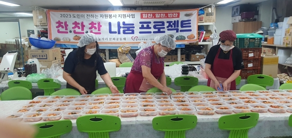 ‘찬·찬·찬 나눔 프로젝트’를 통해 어려운 어르신에게 반찬을 지원하고 있으며 지역아동센터와 연계해 자원봉사의 중요성을 교육하고 있다.