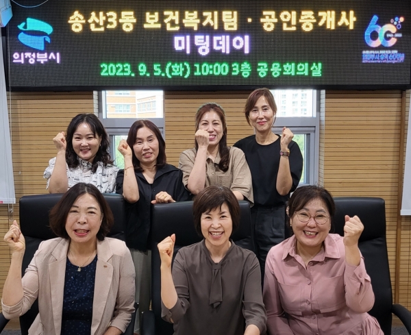 [금요저널] 의정부시 송산3동행정복지센터는 9월 5일 한국공인중개사협회 의정부시지회 회원 7명이 참석한 가운데 보건복지팀과 공인중개사 간 미팅데이를 개최했다.