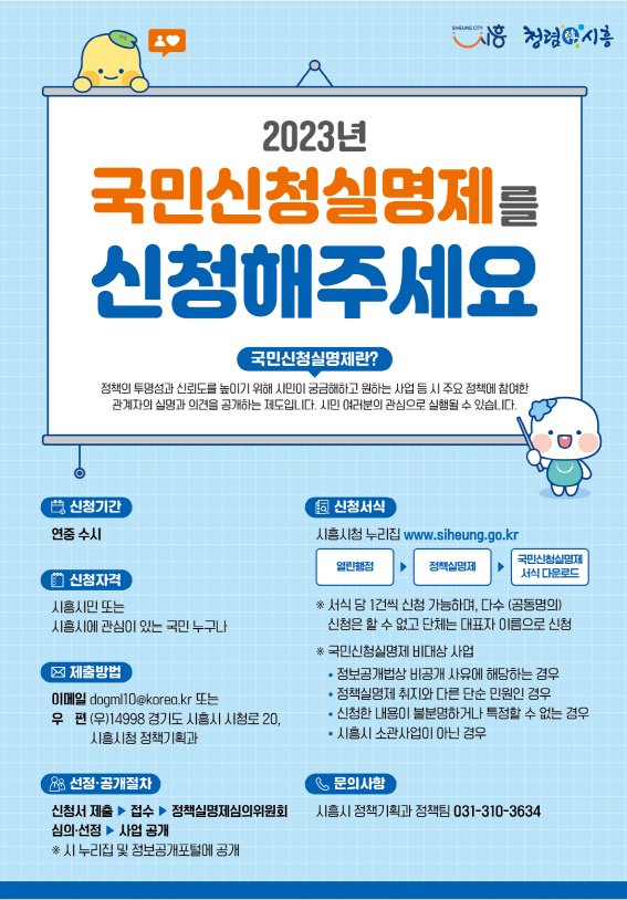 [금요저널] 시흥시는 정책의 투명성과 신뢰도를 높이기 위해 ‘국민신청실명제’를 연중 상시 운영하고 있다.