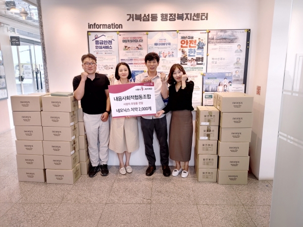 [금요저널] 거북섬동 행정복지센터에 지난 5일 내음사회적협동조합이 방문해 네오닉스 치약 2,000개를 전달하며 사랑의 나눔을 실천했다.