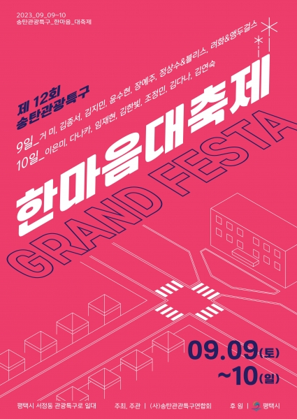 올해로 12회째를 맞는 이번 송탄관광특구 한마음 대축제는 축제장 내 사진 촬영 구역 조성, 경품추첨 등 이전보다 더욱 풍부한 즐길 거리를 제공하며 시민들과 관광객이 모두가 함께 즐길 수 있는 축제의 장을 마련할 예정이다.