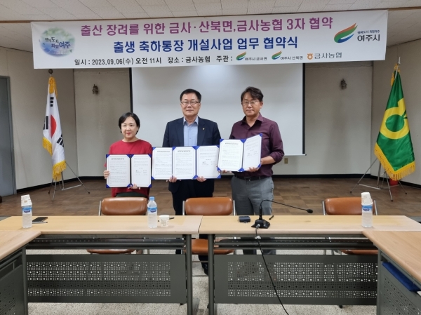[금요저널] 여주시 산북면은 6일 2023년 산북면과 금사농협이 함께 하는 출생 축하 통장 개설 사업 업무협약을 체결했다.